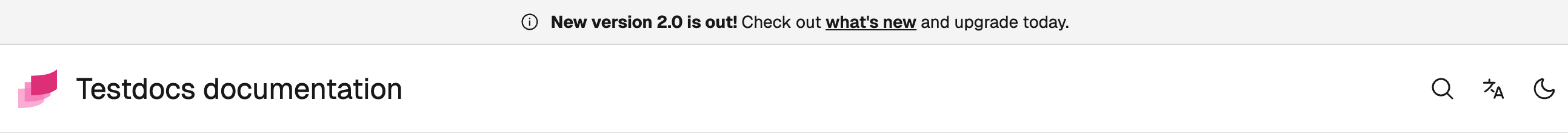 html_theme_options’sannouncementoption to arbitrary content.html_theme_options = { "announcement": "New version 2.0 is out!" }