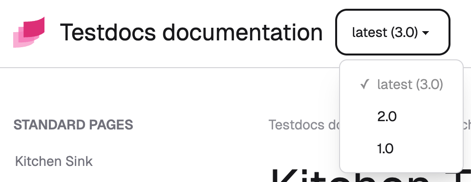 Let users switch between different documentation versions with a dropdown selector. The user will select a version, and the theme will redirect them to the corresponding page in a different version.